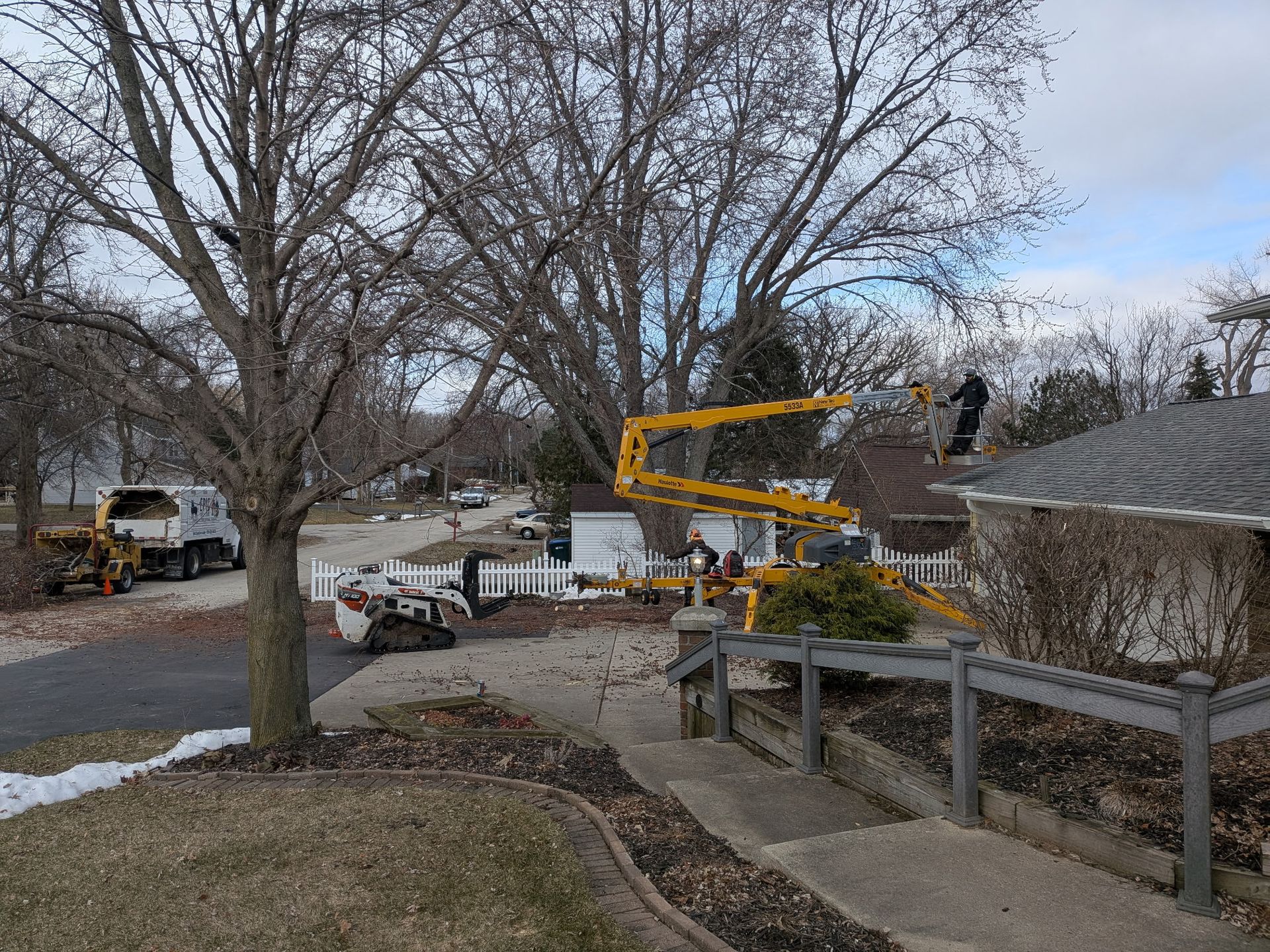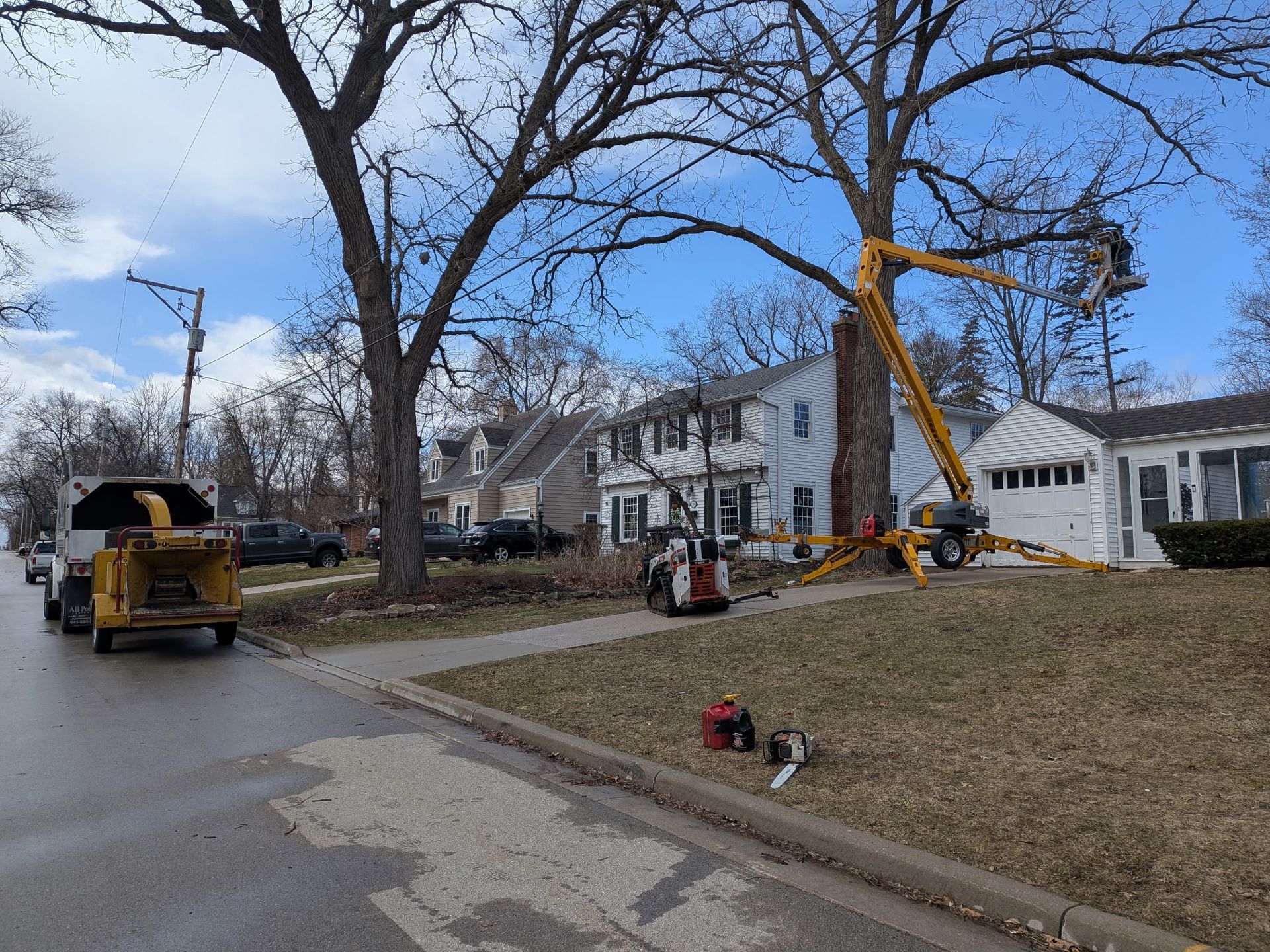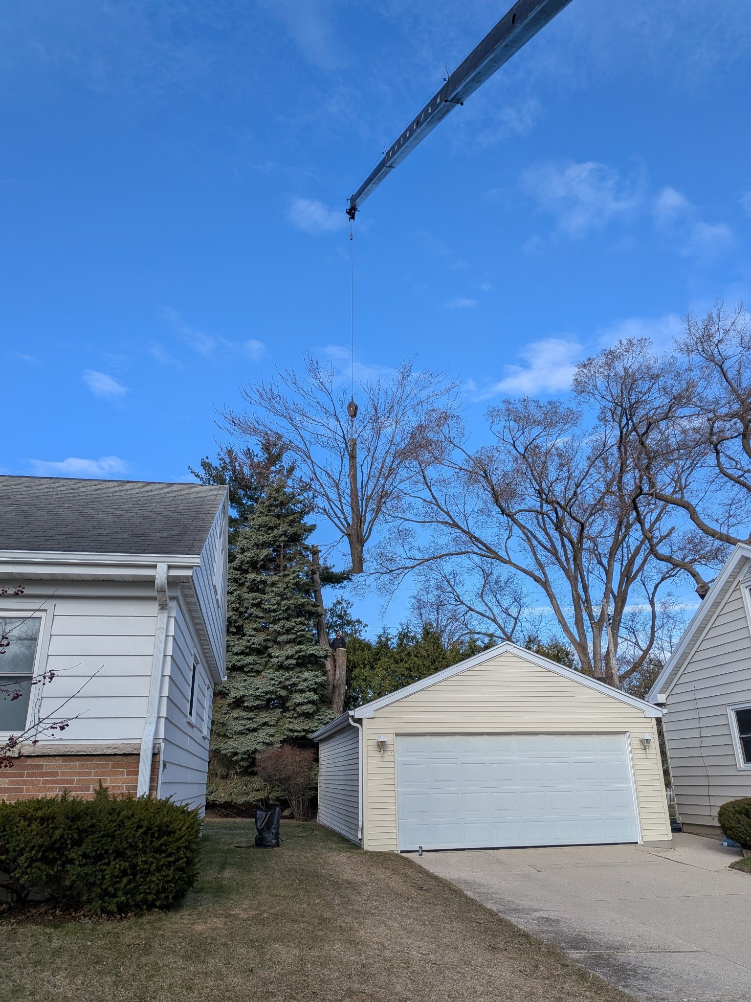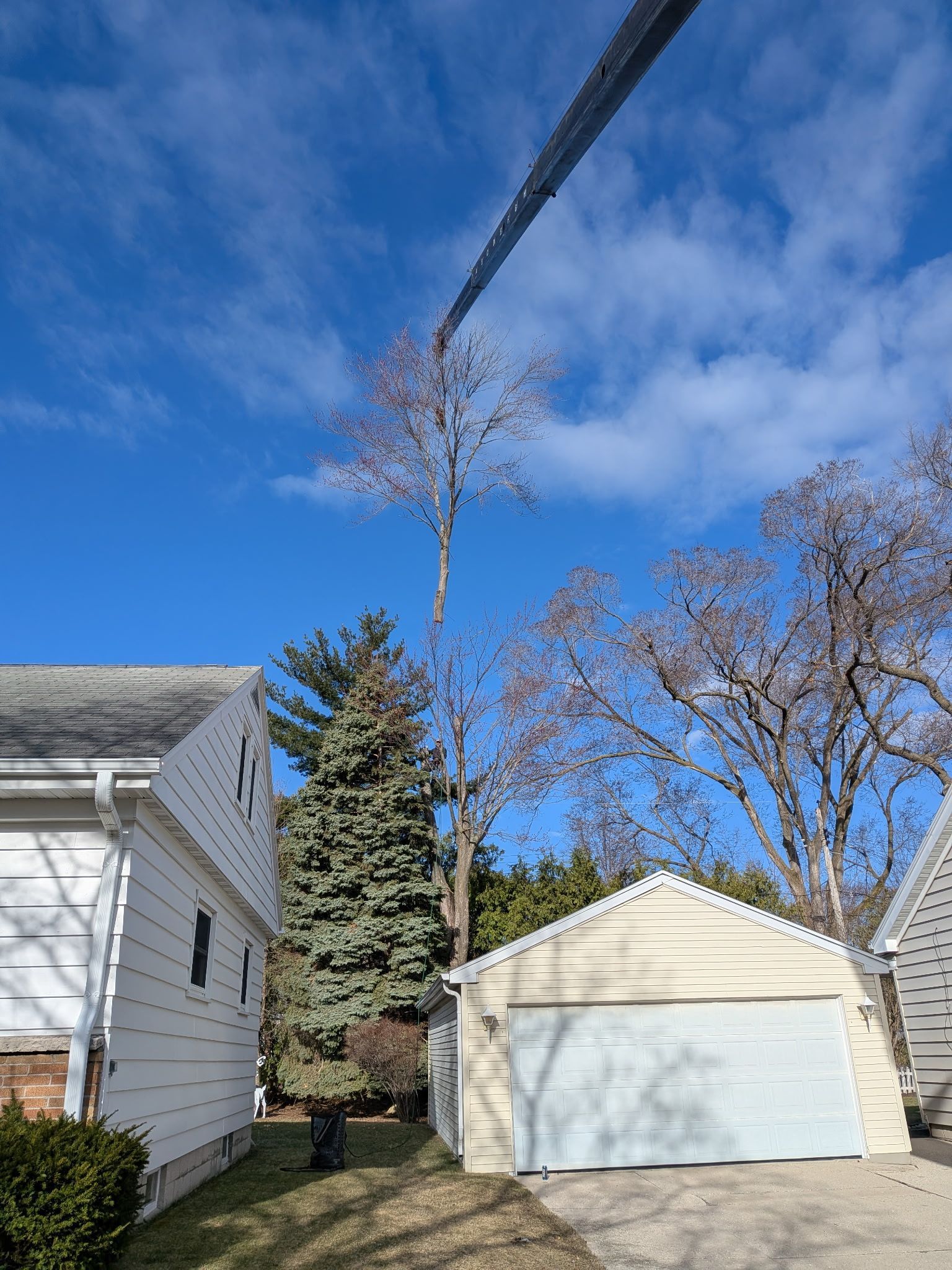 Tree removal and trimming completed for a homeowner in Suamico, Wisconsin. Professional service improved safety, enhanced curb appeal, and ensured healthy tree growth.